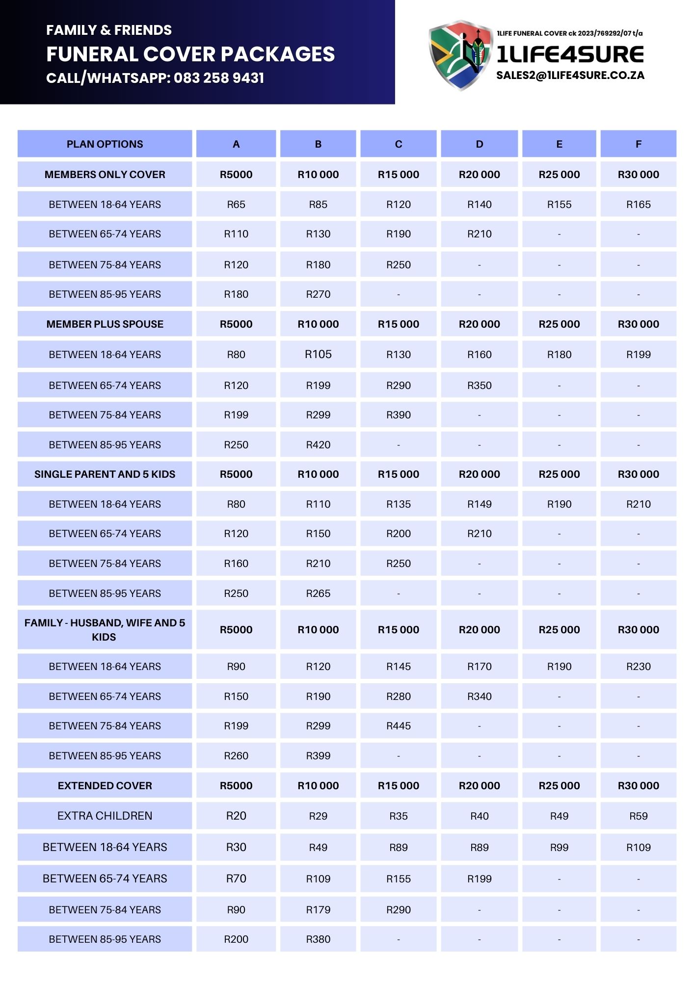 9. The family package covers the main member and their spouse or life partner and a maximum of 5 (five) children.